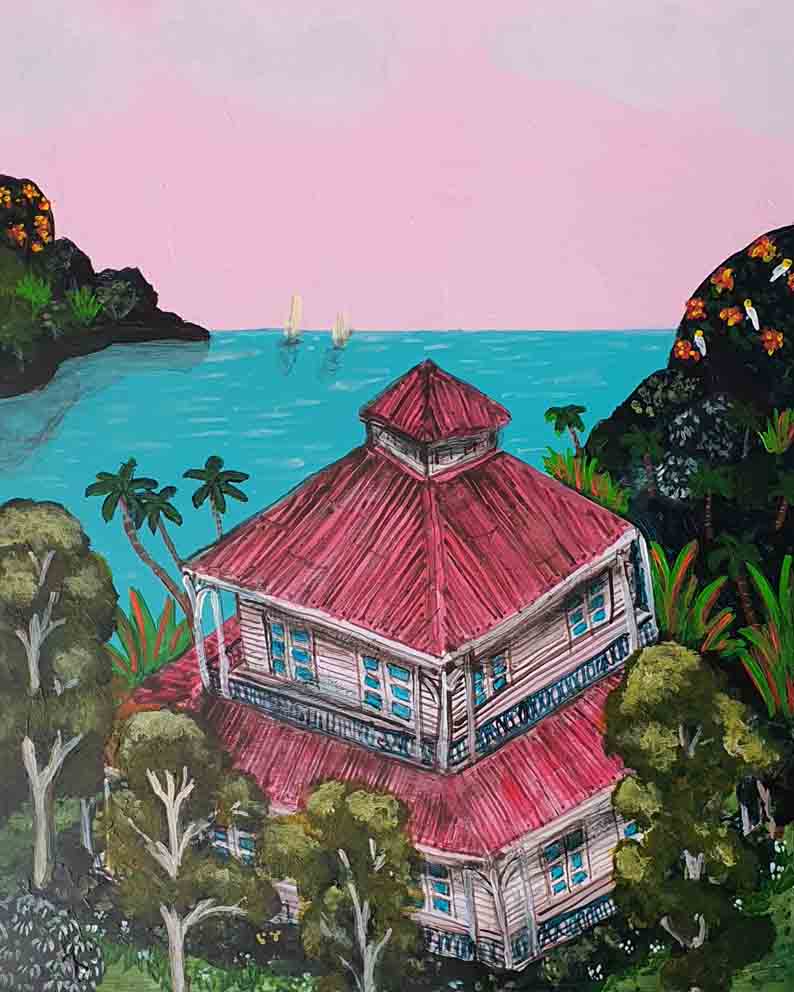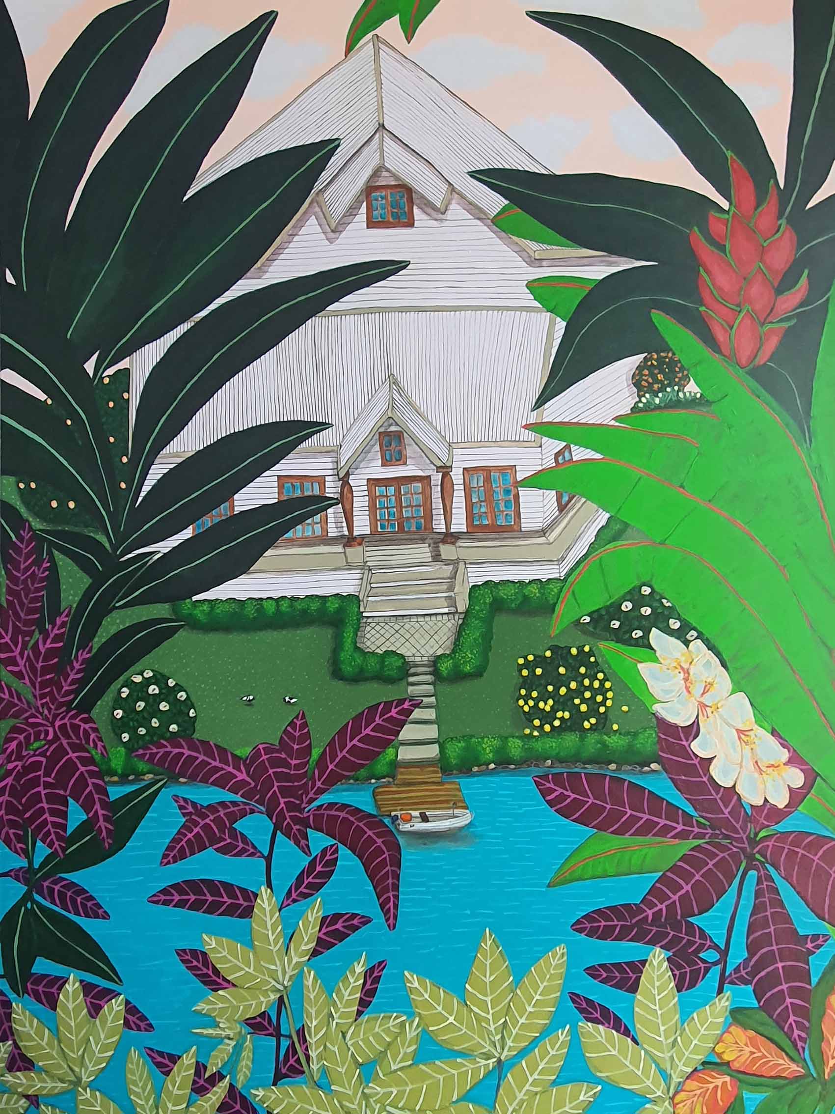 Erica works in acrylic, often painting whimsical scenes from homely spaces, lush landscapes, floral still-life to portraiture. Pieces, generally designed to express joy or reflect moods often containing reference to personal experiences, as well as concerns for humanity, our environment, and the treatment of animals. Pieces infused with pattern, a sense of narrative and colour. part imagined – part life, all painted in her own naive style. Solo exhibitions include life@home,life.e.quatic, The Skin We Are In, Rubber Gloves, Sharp Teeth and Other Pointy Bits and PIPE DREAMS . My work has been a finalist in numerous painting exhibitions among the Adam Portraiture Award 2022 @ New Zealand Portrait Gallery, semi-finalist in the Doug Moran National Portrait Prize 2019 and 2013, in 2015 Hurford Hardwood Portrait Prize as well as a finalist in The Glencore Percival Portrait Painting Prize 2014, 2016, 2018, 2020 and 2022.